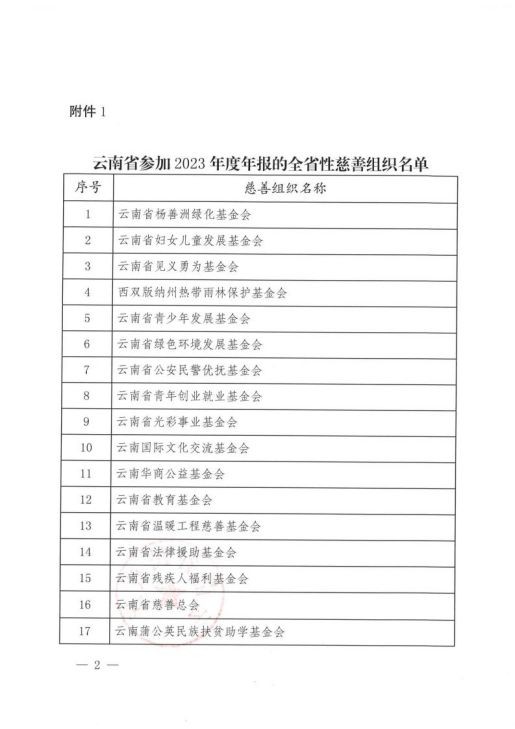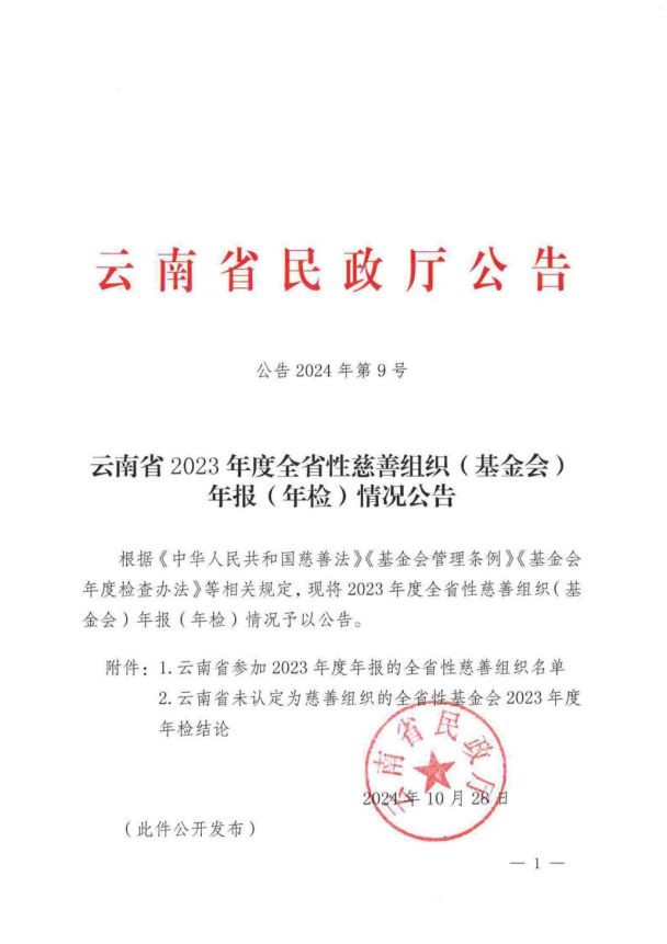 云南省2023年度第一批全省性慈善组织(基金会)年报年检结论公告